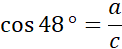 W tym zadaniu oblicz stosunek długości krótszej przyprostokątnej do przeciwprostokątnej w trójkącie prostokątnym o kącie ostrym α, gdy α = 48°.