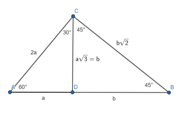 Skorzystaj z własności trójkąta o kątach 30˚, 60˚, 90˚ oraz 45˚, 45˚, 90˚.