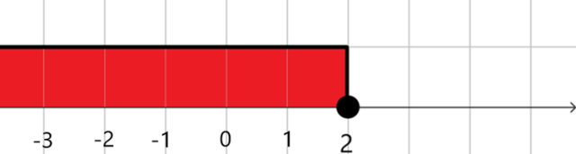 Kółko musi być zamalowane, a podany zbiór znajduje się na lewo od liczby 2.