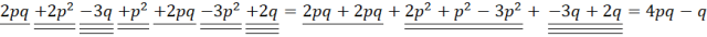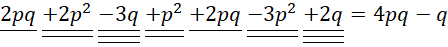 W tym przykładzie będą to: wyrazy z pq, q oraz z p podniesionym do kwadratu.