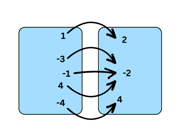 Aby przedstawić funkcje za pomocą grafu w pierwszym polu, wypisz wszystkie argumenty funkcji – czyli to, co znajduje się w pierwszym wierszu tabeli. W drugim polu wpisz wartości, jakie przybiera ta funkcja: -2, 2 oraz 4. Połącz strzałkami argumenty z odpowiadającymi im wartościami.