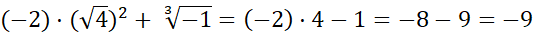 Pamiętaj o kolejności wykonywania działań - w tym przypadku: pierwiastkowanie, mnożenie i jako ostatnie dodawanie.