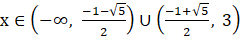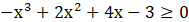 Współczynnik przy najwyższej (nieparzystej), potędze jest ujemny więc wykres zaczynamy rysować z lewej górnej części układu współrzędnych. Odbija się on w punktach będącymi miejscami zerowymi o parzystych krotnościach, a w pozostałych przecina oś. Opisujemy przedział, który znajduje się nad osią OX nie uwzględniając miejsc zerowych.