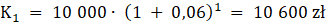 Kapitał końcowy złożony na lokacie przy kapitale początkowym K złożony w banku na n lat przy rocznym oprocentowaniu r i kapitalizacji odsetek m razy w roku wyznaczysz ze wzoru: