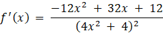 Należy sprawdzić, czy funkcja f w podanym przedziale osiąga ekstrema. Pochodna funkcji f to: