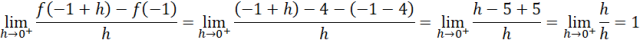Pochodne jednostronne istnieją, ale nie są równe. Funkcja
