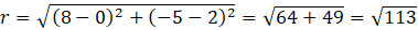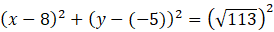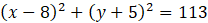 Dany jest punkt (8,-5) który jest środkiem pewnego okręgu. Wiadomo, że do kręgu należy punkt o współrzędnych (0,2). Podaj wzór w postaci kanonicznej tego okręgu.