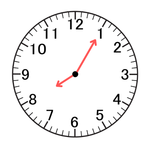 Zegar powinien wskazywać godzinę 20:05. Dorysuj odpowiednio wskazówki. Następnie nazwij utworzony kąt.