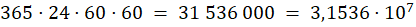 Oblicz, ile jest sekund w roku. Wynik wyraź zgodnie z zasadami notacji wykładniczej.