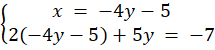 Z pierwszego równania wylicz x, a następnie podstaw do drugiego równania.
