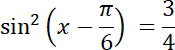 Aby rozwiązać równanie, zacznij od podzielenia go przez 4 i spierwiastkowania obustronnie. Rozdziel równanie na alternatywę dwóch równań. Następnie wyznacz dla pierwszego równania argumenty, dla których sinus przyjmuje wartość