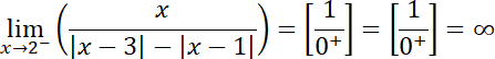 Zacznij od badania dziedziny funkcji, sprawdź, czy istnieją jakieś punkty, w których funkcja nie przyjmuje wartości (tzn. jest w nich nieciągła). W tym przypadku sprawdź, dla jakich punktów mianownik przyjmuje wartość 0, rozwiązując równanie z wartościami bezwzględnymi. Występowanie asymptot pionowych badasz poprzez sprawdzanie granic przy x dążącym do punktu nieciągłości z prawej i lewej strony. Tu jest to punkt x = 2. W tym przypadku po podstawieniu w granicach wartości nieco większej i nieco mniejszej niż 1 otrzymasz odpowiednio minus nieskończoność oraz nieskończoność, a więc granice niewłaściwe. Stąd wniosek, że w punkcie