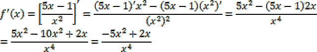 Najpierw wyznacz dziedzinę funkcji, wiedząc, że wyrażenie w mianowniku jest różne od zera, a następnie wyznacz jej pochodną, korzystając z własności