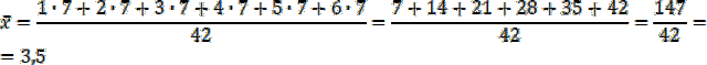 Każda liczba oczek wypadła po 7 razy, więc nie można wyznaczyć dominanty tego zestawu.