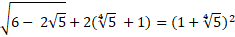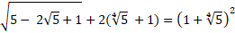 W tym zadaniu zastosuj rozłożenie równania pod pierwiastkiem na takie czynniki, aby móc je zwinąć we wzór skróconego mnożenia. Pamiętaj, aby nie zmieniło to wartości wyrażenia pod pierwiastkiem. 6 można rozłożyć jako 5 + 1. Teraz podziel wyraz z pierwiastkiem, czyli