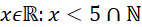 Możemy odczytać, że x ma być liczbą rzeczywistą mniejszą niż 5. Z drugiego warunku, wiemy, że zbiór liczb zawęża się do liczb naturalnych, ponieważ częścią wspólną zbioru licz rzeczywistych i liczb naturalnych jest właśnie zbiór liczb naturalnych. Następnie wypisujemy wszystkie liczby, które spełniają ten warunek.