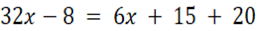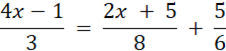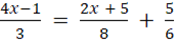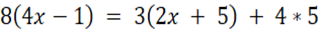 Należy pomnożyć równanie przez 24, by pozbyć się ułamków. Następnie należy pomnożyć sumę i różnicę algebraiczną przez liczby poprzedzające ich nawiasy. Następnie należy przenieść niewiadome na lewą stronę równania a liczby na prawą stronę równania. Na koniec dzielimy równanie przez liczbę stojącą przy x.