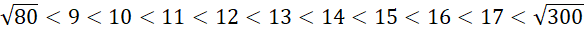 Są to liczby 9, 10, 11, 12, 13, 14, 15, 16 i 17.