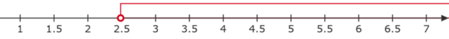 Zaznacz na osi liczbowej i zapisz jako przedział wszystkie liczby dodatnie oddalone od 0 o więcej niż 2,5 jednostki.