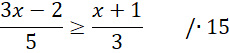 Następnie wyznacz rozwiązanie podanej nierówności, aby to zrobić całą nierówność pomnóż przez najmniejszą wspólną wielokrotność liczb znajdujących się w mianownikach ułamków, przenieś wszystkie liczby z