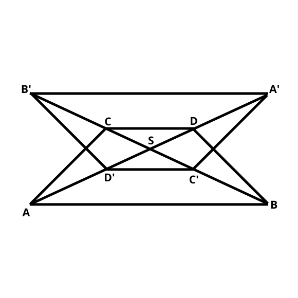 Musisz narysować figurę symetryczną do trapezu względem punktu przecięcia przekątnych.