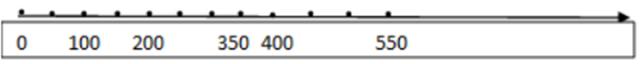 Należy narysować oś liczbową ze strzałką skierowaną w prawo i dobrać odpowiednią jednostkę osi, w tym przypadku najlepszą jednostką będzie 50. Następnie należy zaznaczyć liczby. Pamiętaj, że poruszając się w prawo, wartości liczb wzrastają o 50.