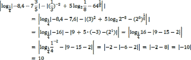 Aby rozwiązać to zadanie, należy skorzystać z wiadomości działań na logarytmach i potęgach, uprościć wyrażenie, następnie wyciągnąć liczby z wartości bezwzględnej i zapisać wynik w najprostszej postaci.