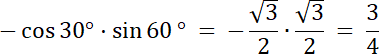 sin (270° + 30°) ⋅ cos (270° + 60°) = –cos 30° ⋅ sin 60° =