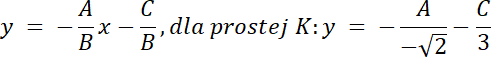 równanie prostej k w postaci ogólnej:–√6x + 3y + 8 = 0