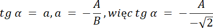 Na podstawie wartości kąta α, wyznacz wartość brakującego współczynnika w równaniu ogólnym.