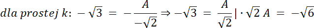 równanie ogólne prostej: Ax + By + C = 0, prosta k: Ax–√2y = 0 dla B = –√2, więc B ≠ 0,