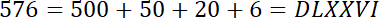 Liczba 576 w zapisie arabskim to DLXXVI w zapisie rzymskim.