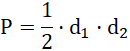 Pole deltoidu obliczasz, dzieląc przez 2 iloczyn długości przekątnych rombu.