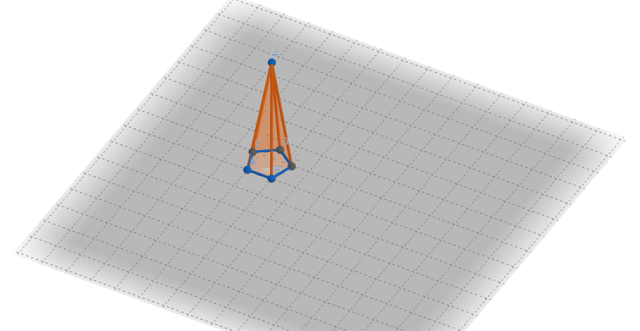 Podstawa ostrosłupa jest pięciokątem o boku długości 1,5 cm, a długość krawędzi bocznej wynosi 2,5 cm.