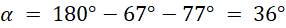 Suma kątów w trójkącie to 180°. Aby policzyć brakujący kąt, odejmij od
