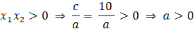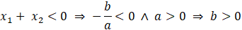 Aby wyznaczyć współczynniki równania, na początku skorzystaj z własności f(0) = 7, z której wynika wartość współczynnika c (7 > 0). Następnie skorzystaj ze wzorów Viète’a – oba miejsca zerowe są sobie równe, więc ich iloczyn zawsze jest dodatni, a ponieważ x2 < 0, x1 również, więc ich suma jest ujemna. Ze wzoru na iloczyn miejsc zerowych możesz zapisać zależność: