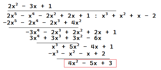 Aby rozwiązać zadanie, wykonaj dzielenie wielomianów sposobem pisemny. Szukaną resztą jest wyrażenie „pod kreską” (zaznaczone na czerwono).