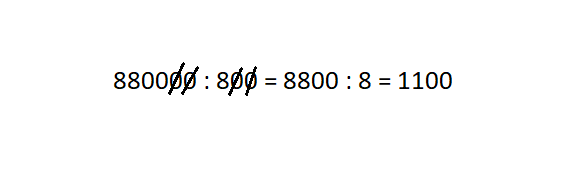 Jeśli dwie dzielone przez siebie liczby posiadają zera, można je o nie skrócić, aby ułatwić obliczenie. Skreślamy taka sama ilość zer u każdej liczby.