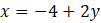 Rozwiązujemy układ równań metodą podstawiania, z pierwszego równania wyznaczamy x: