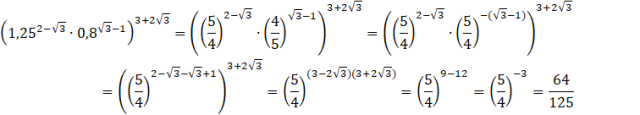 Doprowadź liczby do tej samej podstawy i następnie wykonaj działania na potęgach.