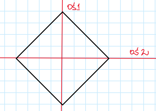 Wskaż liczbę osi symetrii rombu, który nie jest prostokątem.
