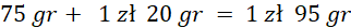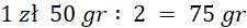 Aby obliczyć kwotę wydaną na zakupy, musimy podzielić cenę za 1 kg ziemniaków, na 2, aby dowiedzieć się, jaka jest cena za pół kilograma. Kolejnym działaniem jest dodanie ceny za 1 kg ziemniaków do ceny za pół kilograma. Następnie to samo robimy z ceną za 1 kg buraków. Obydwa wyniki dodajemy.