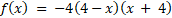 Dla funkcji f(x) = –4(x – 1)(5 – x) wyznacz równanie osi symetrii oraz przedziały monotoniczności.