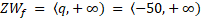 Aby wyznaczyć zbiór wartości (ZWf) określamy współczynnik a oraz drugą współrzędną (q) wierzchołka, którą obliczamy jako wartość funkcji dla argumentu p, będącego średnią jego miejsc zerowych.