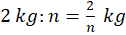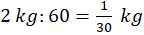 – 2 równe części – 2 kg : 2 = 1 kg