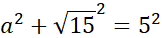 a2 + 15 = 25 / - 15