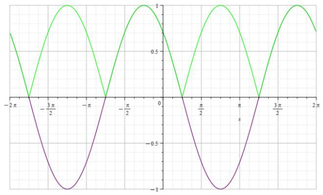 (kolor zielony), w tym celu przerzucasz do góry część wykresu przyjmującą wartości ujemne: