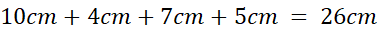Teraz trzeba dodać długości wszystkich boków, aby obliczyć obwód. AC = 10 cm, DC = 4 cm, DG = 7 cm, AG = 5 cm.