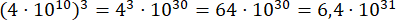 Podnieś podany iloczyn do potęgi trzeciej, pamiętając, że podnosząc potęgę do potęgi, musisz pomnożyć wykładniki, podstawa pozostaje bez zmian. Następnie zapisz podany wynik w postaci notacji wykładniczej.