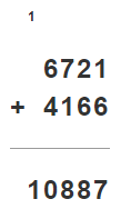 Aby dodać dwie liczby sposobem pisemnym, dodaj cyfry w tych samych kolumnach i zapisz ich sumę pod kreską w tej samej kolumnie. Jeśli wynik jest większy od 9, cyfrę jedności napisz w tej samej kolumnie, a cyfrę dziesiątek dodaj do następnej kolumny po lewej. Cyfra jedności to pierwsza cyfra od prawej, cyfra dziesiątek to druga, setek to trzecia, a tysięcy czwarta.